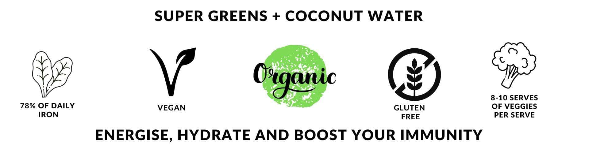 You can use Coconut Greens in so many ways, simply add a levelled table-spoon to chilled water, a protein shake, supercharge your fruit smoothie, sprinkle in oats or bliss balls even pop it in your water bottle when on the run.